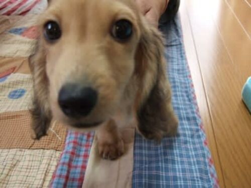 お友達のお家でワンコを飼い始めたというので,見に行ってきました~ [はじめましてぼく,ノアです] さすが子犬 起きてるときは片時もじっとしてないので,飼い主さんにキャッチしてもらって写真をパチリ 4ヶ月だそうだけど,ミニチュアダックスだからか…