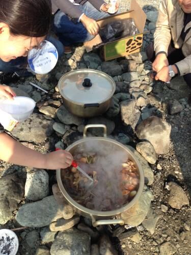 今日は、チャココ父の会社のみんなで秋の恒例の芋煮会 うちの近くの川原でワイワイとやりました。 火力不足で二時間以上掛かりましたが、何とか完成! 手前の鍋は、山形風で牛肉で醤油味。 奥の鍋は、宮城風で豚肉で味噌味。 これは、甲乙つけがたい。どっち…