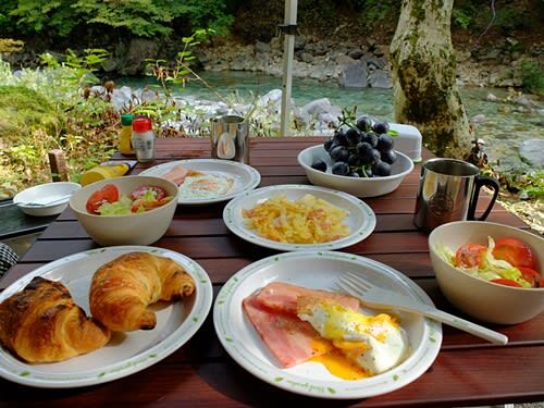 さわやかな朝を迎え,まったりと朝食。 キャンプだと,シンプルな朝食でも,格別に! おNewのテントでしたが,ごく普通のテントなので,特にどうってこともなく。 日が昇ってきたので,早速,川遊び開始。 今日は,場所を変えて,下流の淵を目指します。 ち…