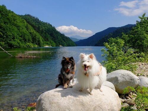 久々に奥利根湖へ。 この時期の奥利根湖は3年ぶり。 前回も素晴らしいコンディションでしたが、今回も、満水、晴天、残雪、無風の絶好のコンディション。 チャコも一緒。 出発が遅かったので、漕ぎ出しは11時半になってしまいました。 出発だワン! この時…