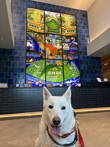 今回の旅行も、ほぼ車中泊とテント泊ですが、今日は貴重な犬宿。 星野リゾートの、OMO5函館です。 駅前のシティホテルみたいだけど、本当にワンコOKなの? まだ新しくて、キレイなエントランス。 フロントにも、ワンコはそのまま入れます。 きれいなステンド…