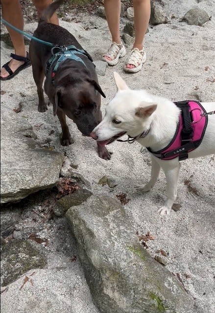 時々ワンコも通ります。ちゃんと挨拶できました。